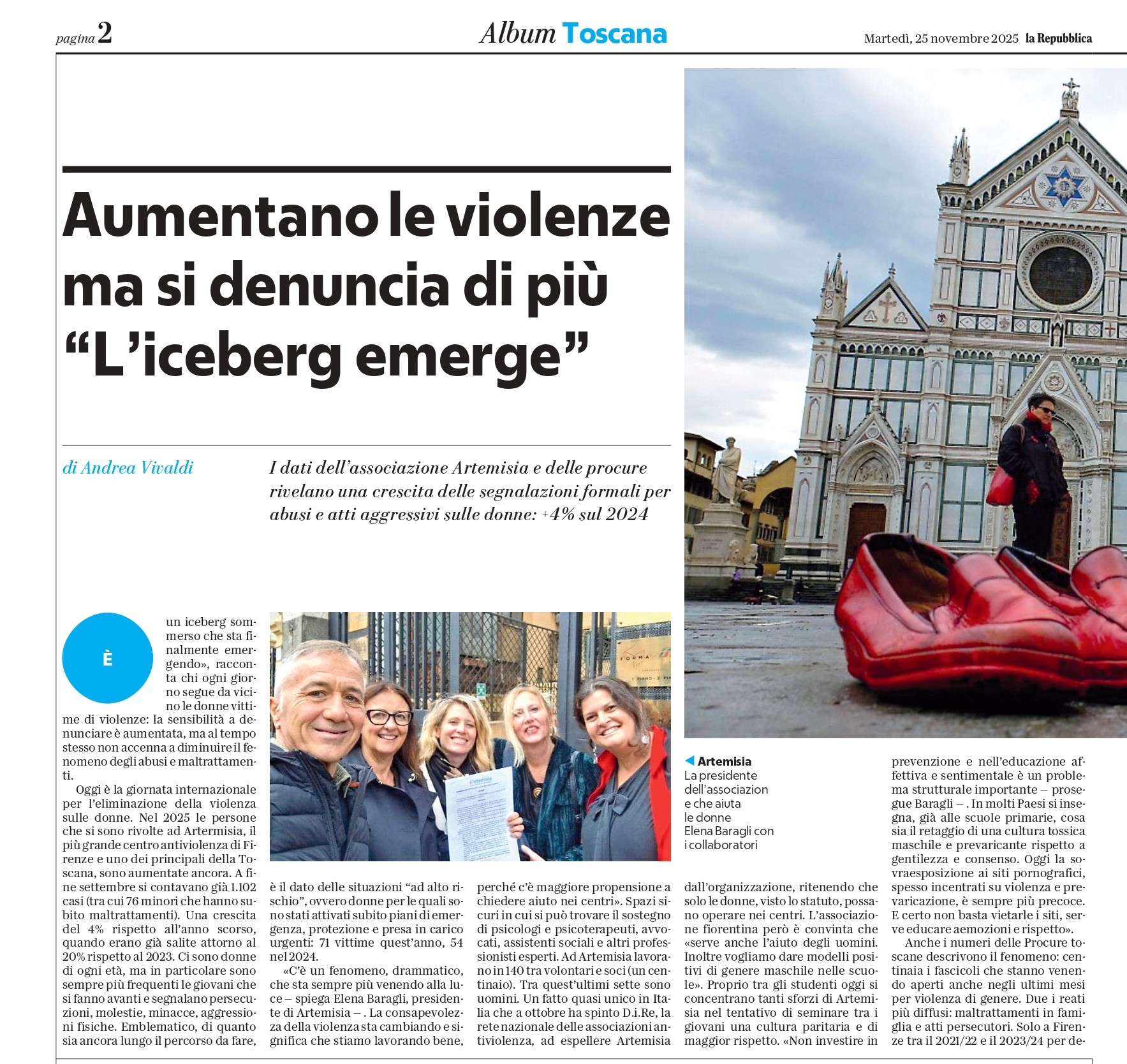 «LA REPUBBLICA» intervista a Elena Baragli: «La consapevolezza della violenza sta cambiando e significa che stiamo lavorando bene, perché c’è maggiore propensione a chiedere aiuto nei centri»