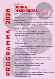 Il corso “Donna in Sicurezza” rappresenta un’importante occasione di formazione e prevenzione contro la violenza di genere. Ogni incontro sarà dedicato a un tema specifico: