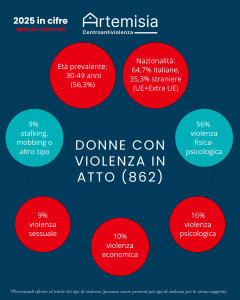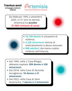 I dati si inseriscono anche nel quadro più ampio del fenomeno rilevato dall’𝐎𝐬𝐬𝐞𝐫𝐯𝐚𝐭𝐨𝐫𝐢𝐨 𝐑𝐞𝐠𝐢𝐨𝐧𝐚𝐥𝐞 𝐬𝐮𝐥𝐥𝐚 𝐕𝐢𝐨𝐥𝐞𝐧𝐳𝐚 𝐝𝐢 𝐆𝐞𝐧𝐞𝐫𝐞, che ogni anno presenta il suo Rapporto, giunto ormai alla 17ª edizione. In questo contesto più vasto, i dati di Artemisia mantengono un peso importante: perché 𝐫𝐚𝐜𝐜𝐨𝐧𝐭𝐚𝐧𝐨 𝐜𝐢𝐨̀ 𝐜𝐡𝐞 𝐯𝐞𝐝𝐢𝐚𝐦𝐨 𝐨𝐠𝐧𝐢 𝐠𝐢𝐨𝐫𝐧𝐨, 𝐝𝐚 𝐯𝐢𝐜𝐢𝐧𝐨.